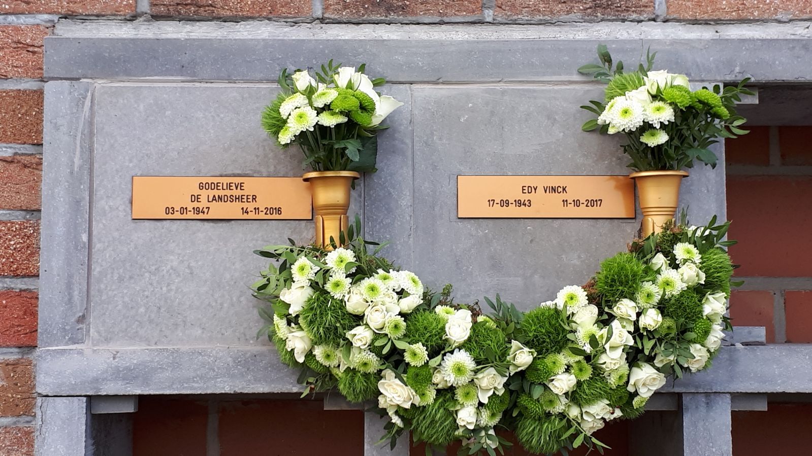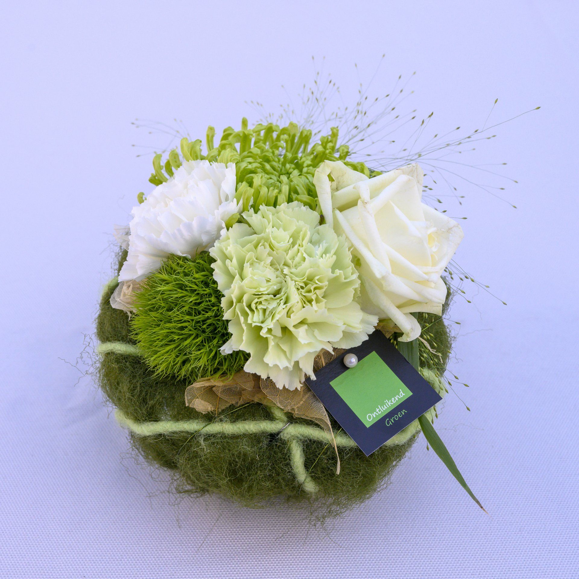 Voor Allerheiligen maak ik telkens een tiental voorbeelden (met een variant in wit-groen en een variant in kleur) waaruit kan gekozen worden. Begin oktober kan u deze voorbeelden bekijken.